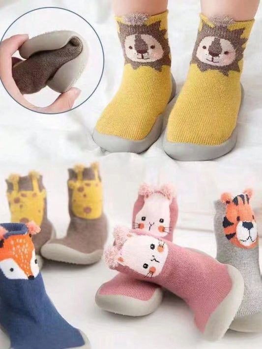 1 Pair Cartoon Printed Anti-Slip Silicone Bottom Walking Socks For 0-3 Years Old Toddlers