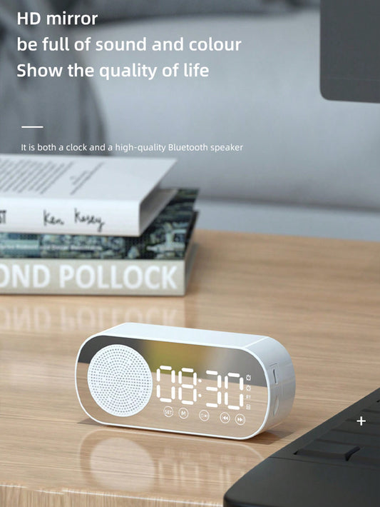 Digital Alarm Clock, HiFi FM Radio LED Digital Alarm Clock USB Charging, Portable Rechargeable Bluetooth 5.0 Speaker Mirror Clock For Reading, Trip