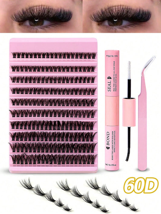 DIY Eyelash Extension Kit 200pcs Individual Lashes Cluster D Curl, 8-16mm Mix Lash Clusters With Lash Bond And Seal And Lash Applicator Tool For Self Application At Home (40D-0.07D-8-16MIX KIT)