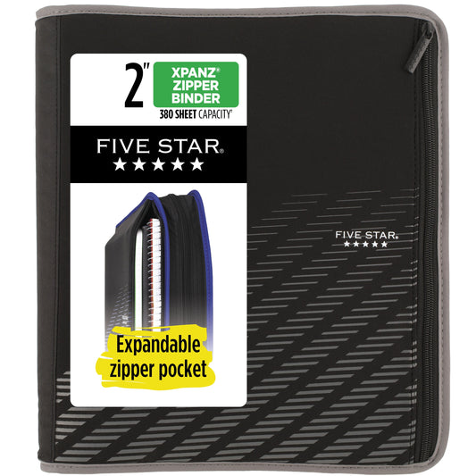 Five Star Xpanz Zipper Binder, 2" Round Rings, 380 Sheets, Gray (28090HX9)