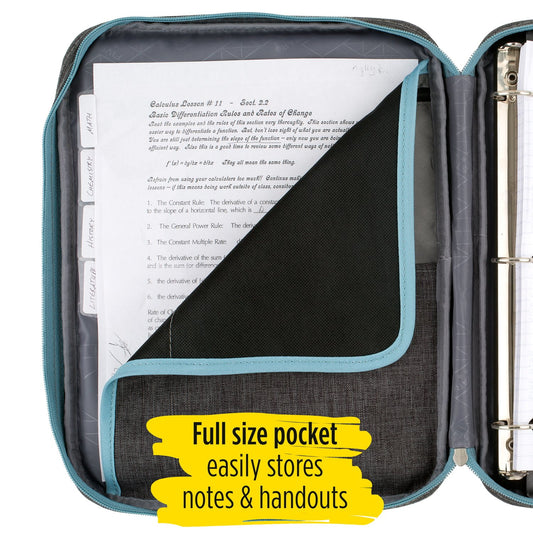 Five Star Zipper Binder, 1 Inch 3-Ring Binder, Carry-All with Internal Pockets and Dividers, Gray/Teal