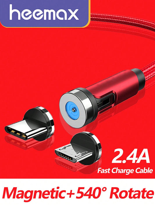 Magnetic Charging Cable 540° Rotating Magnetic Phone Charger Cable 90° Angle Connector, 2.4A Nylon-Braided Fast Charging Cords Compatible With IPhone 15 Samsung Galaxy S23/S22/S8 S9 S10 Note 9 Note 10, V30 V40 V50, Moto G8 G7, Type C / Micro USB Magnet