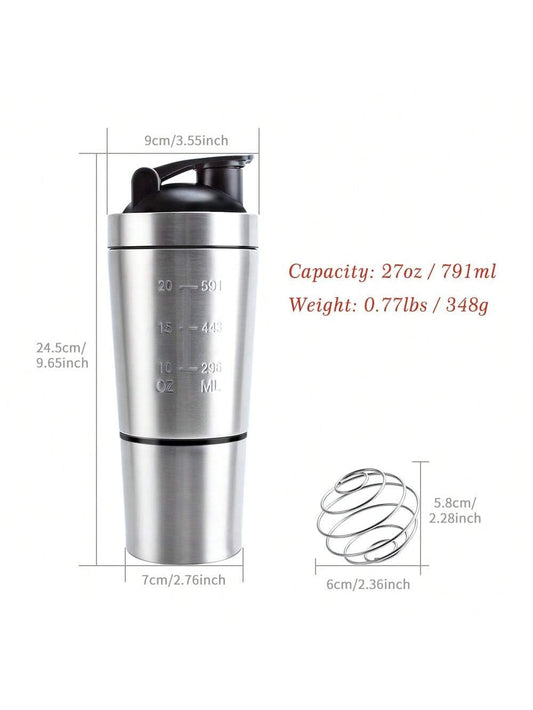 1pc 791mL/27oz Stainless Steel Protein Shaker Bottle, Dual Shaker Cup With Mixing Ball