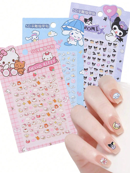 1Pc 5D Cartoon Nail Stickers Hello Kitty Kuromi Cinnamoroll Nail Art Stickers Kitty Cat Nail Art Decoration New Anime Nail Decals(Some Parts May Be Random)