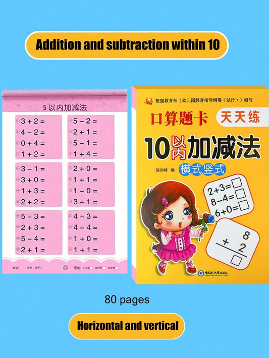 1pc 80-Page Children Daily Math Workbook With Addition, Subtraction, Decomposition And Composition Exercises In Both Horizontal And Vertical Style (Some Chinese Inside, Does Not Affect Usage)School, Student,Stationery,School Supplies School Supplies Hallo