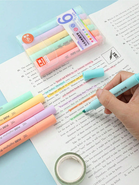 1box 6pcs Double-Headed Fluorescent Highlighter With Visible Window, Used For Student Notes, Doodles