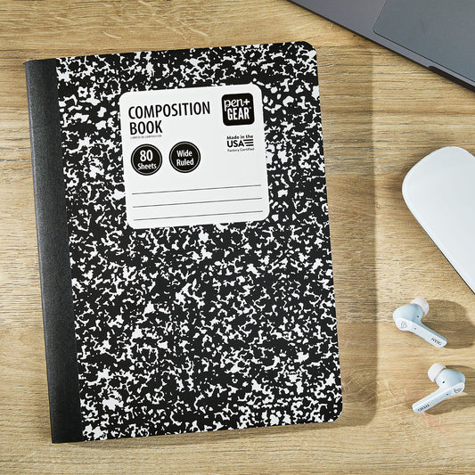 Pen+Gear 80 Sheets Marble Composition Book, 9.75 x 7.5 Wide Ruled