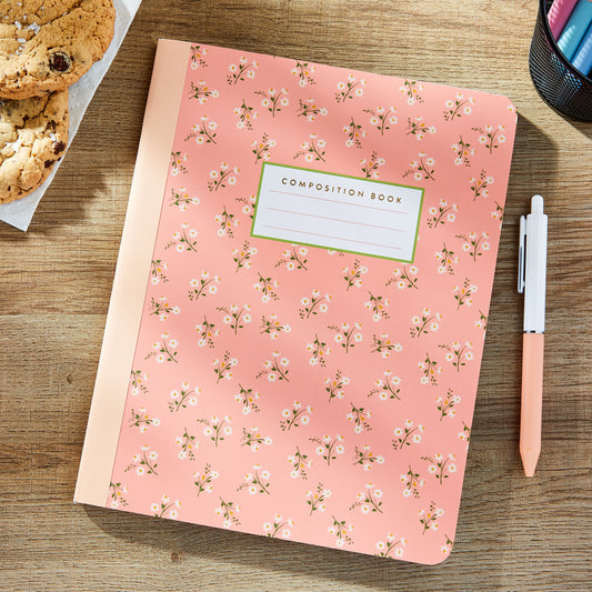 Pen+Gear College Ruled Composition Book, 7.5" x 9.75", Pink Flowers, 80 Sheets