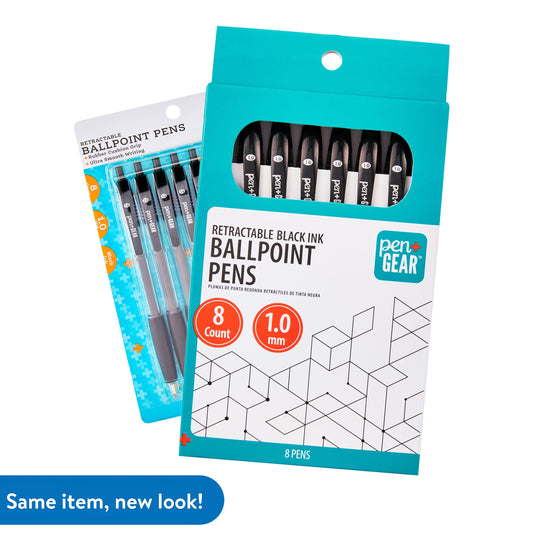 Pen+Gear Retractable Ballpoint Pens, 1.0 mm, Medium Point, Black Ink, 8 Pack