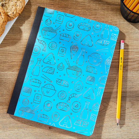 Pen+Gear Wide Ruled Poly Composition Book, 7.5" x 9.75", Blue Sushi, 80 Sheets