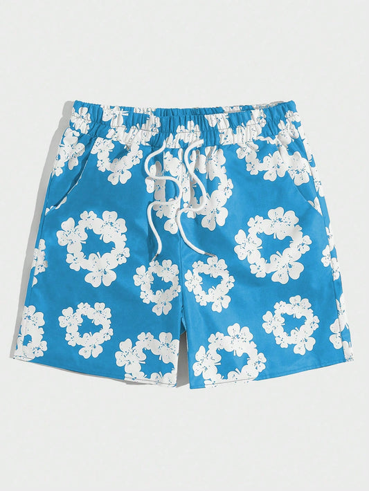 ROMWE Street Life Men Floral Print Drawstring Waist Shorts
