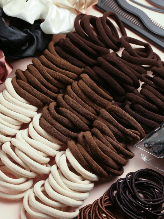 Women's Simple Dark Color Elastic Hair Ties For Ponytail, Bun, Disposable Rubber Bands, Variety Of Hair Accessories Set For Daily Use