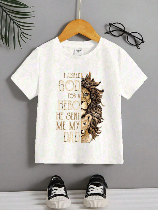 Young Boy Summer Casual Cartoon Dinosaur Guide Pattern Round Neck Short Sleeve T-Shirt