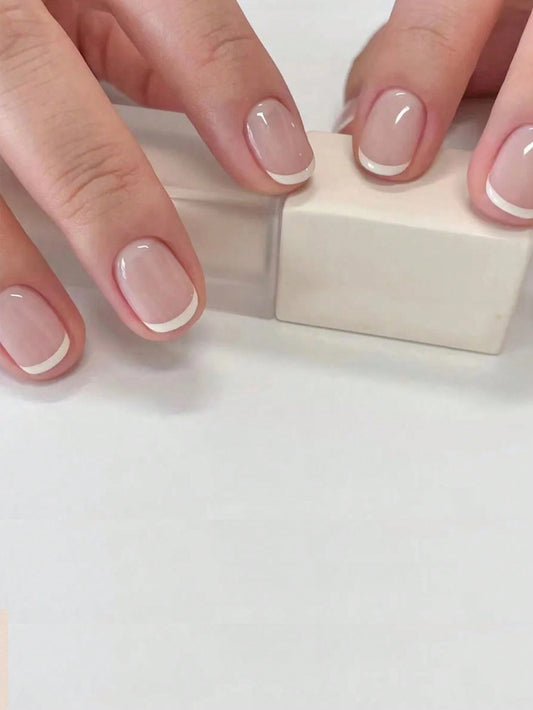 24pcs Short Coffin Shape Pink Gradual Change Jelly Pink Nail Kit Suitable For Women And Girls Press On Nails Nail Supplies