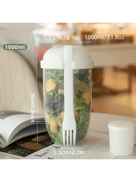 1pc, Salad Cup, Salad Meal Shaker Cup, Plastic Healthy Salad Container Wih Fork, Salad Dressing Holder, Salad Cup For Picnic Lunch Breakfast, Kitchen Stuff, Kitchen Gadgets, Back To School Supplies 1000ml/33.8oz