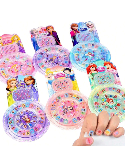 1Set Random Style Disney Frozen Cartoon Sofia Snow White Elsa Anna Princess Nail Stickers Dress-Up Nail Stickers Children's Gift(Some Parts May Be Random)(Nail Stickers Set With New And Old Packaging Randomly Delivery)
