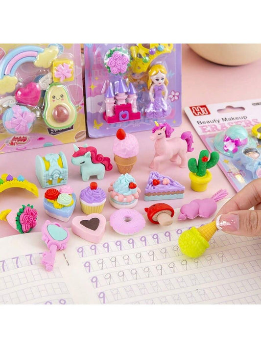 1set Creative Detachable Erasers In Adorable Animal/Dessert/Princess/Fruit Shapes, Cartoon Campus Stationery, Holiday Small Gifts
