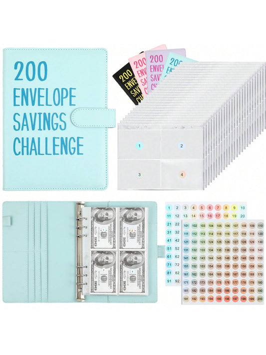 200 Envelope Challenge Binder Money Saving Binder Challenge Book With Cash Envelopes Savings Book Budget Binder Planner Book For Organizer Budgeting 50 Page 200 Card Slot(Blue)