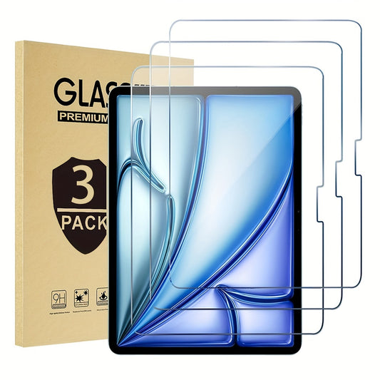 3 Pack of Scratch Resistant Glass Screen Protectors for iPad Pro 11, 13, 2024 M4, M2 Pro, 12.9, 5, 4 Pro - 9H Hardness