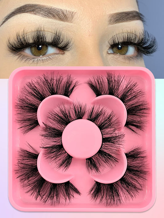 3 Pairs Fluffy And Thick False Eyelashes For Dramatic 3d Wispy Faux Mink Look