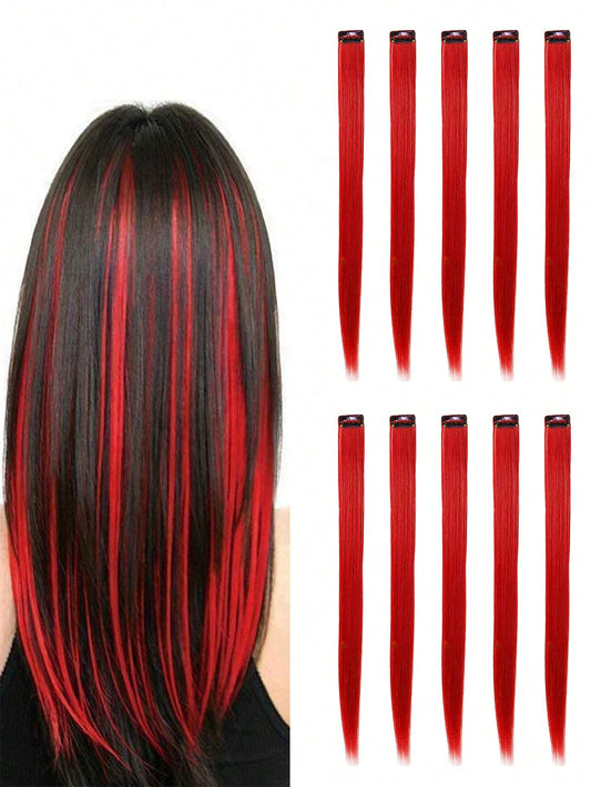 2pcs Colored Clip-in Hair Extension, Curly Wavy 20'' Long Unusual Color Clip-on Party Highlight, Hair Clip For Girls, Women, Kids - Suitable For Party, Festival And Daily Wear
