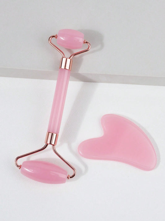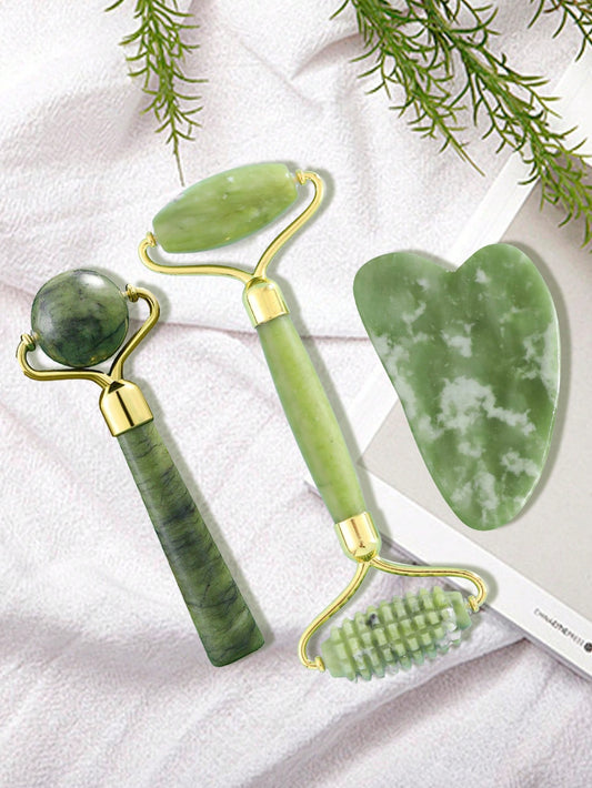 2pcs Facial Massage Roller+1pc Guasha Board,Massage Tool For Face And Body Treatment, Relieve Tensions And Reduce Puffiness