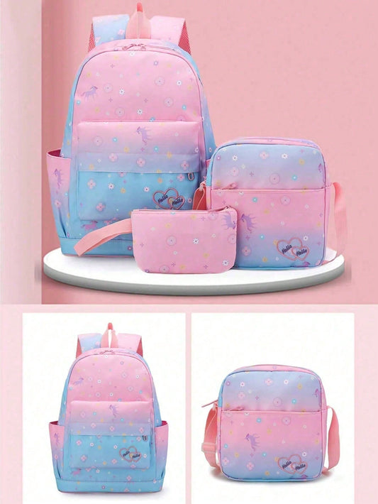 3-piece girls backpack set children's schoolbag with lunch box elementary school outdoor bag,