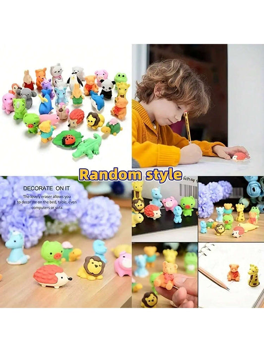 25pcs Animal Erasers Kids Pencil Erasers Puzzle Erasers Desk Pets Mini Take Apart Erasers Toys For Party Favors, Classroom Students Prizes, Carnival GiftsOffice, School, Drawing,Student,Markers,Stationery,Boys,Girls,School Supplies