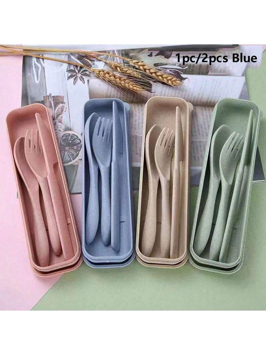 3 In 1 Camping Utensil Set, Reusable Utensils Set With Case, Travel Utensils, Portable Utensils Set, Friendly Plastic Case For Travel Picnic Camping Or Daily Use,Perfect For Students, Travel, And Kitchen Use! School Supplies,Back To School