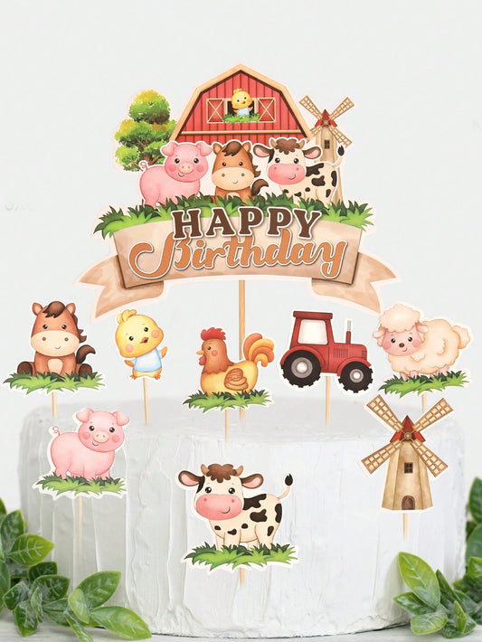 9Pcs Farm Animal Happy Birthday Cake Toppers Farm Cow Sheep Pig Happy Birthday Cake Picks For Farm Animal Theme Barnyard Birthday Party Cake Decor Supplies