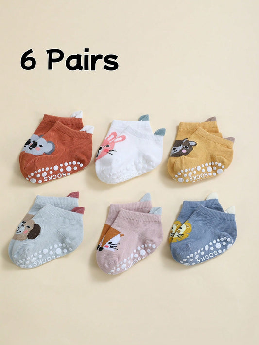 6 Pairs Anti-Slip Dot Gel Baby Socks 0-1 Years Old Cute Cartoon Children Boat Socks